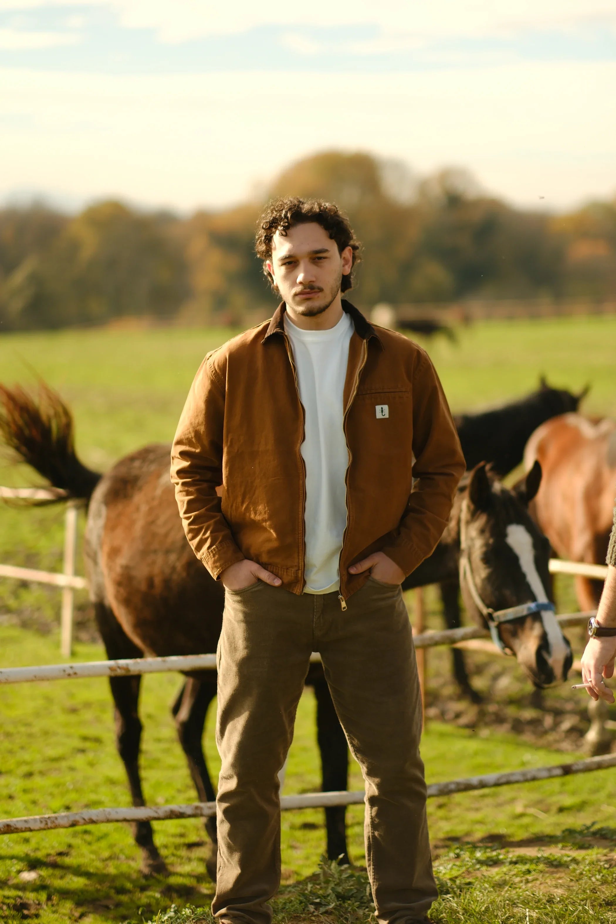 This jacket is a rebellion against fast fashion. With its thick stitching, sturdy zipper, and heavy fabric, it is a legacy to pass from father to son. Designed for men who want to step out of the blue in denim wear and appreciate earth tones.