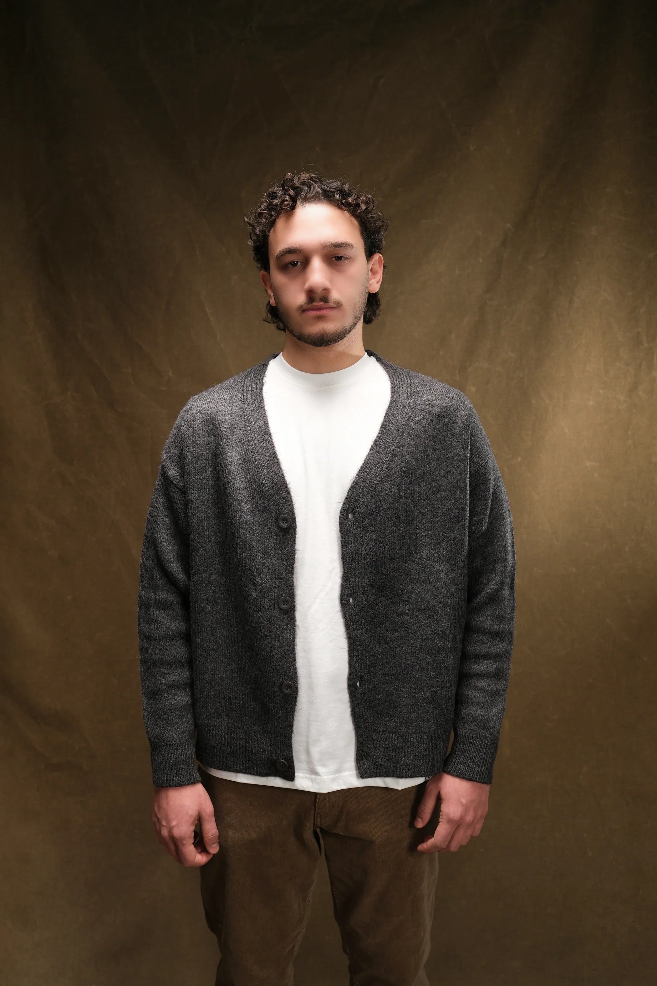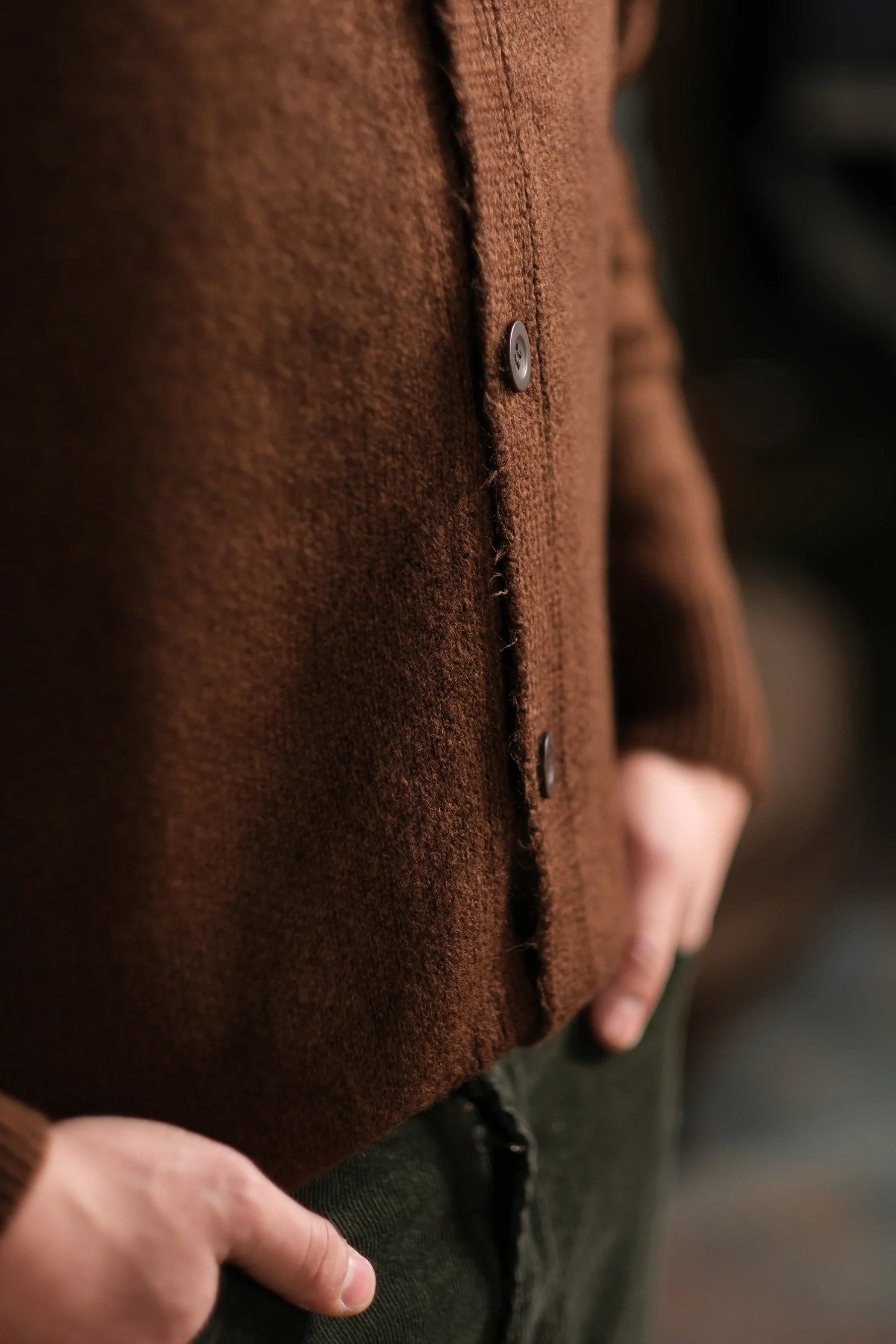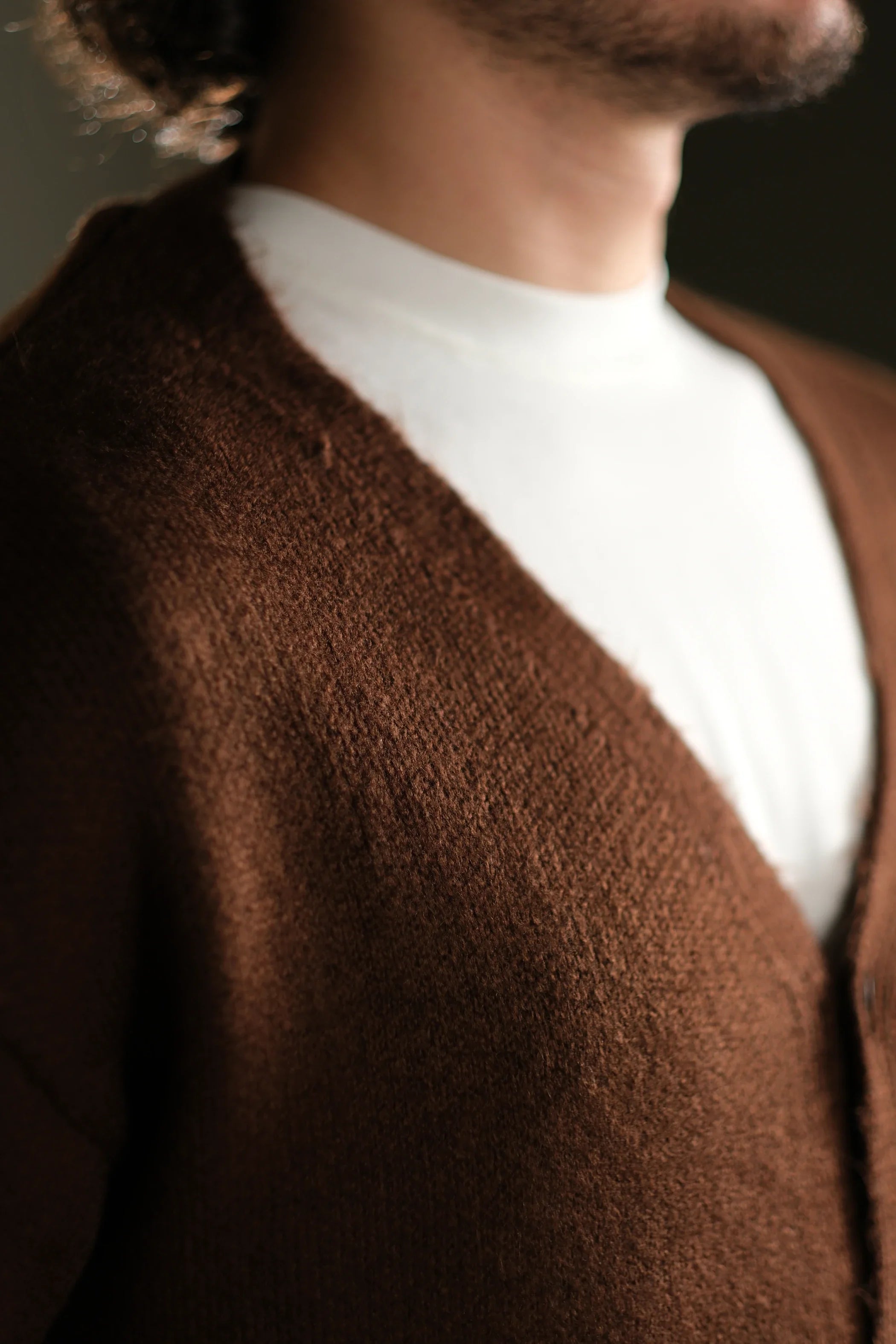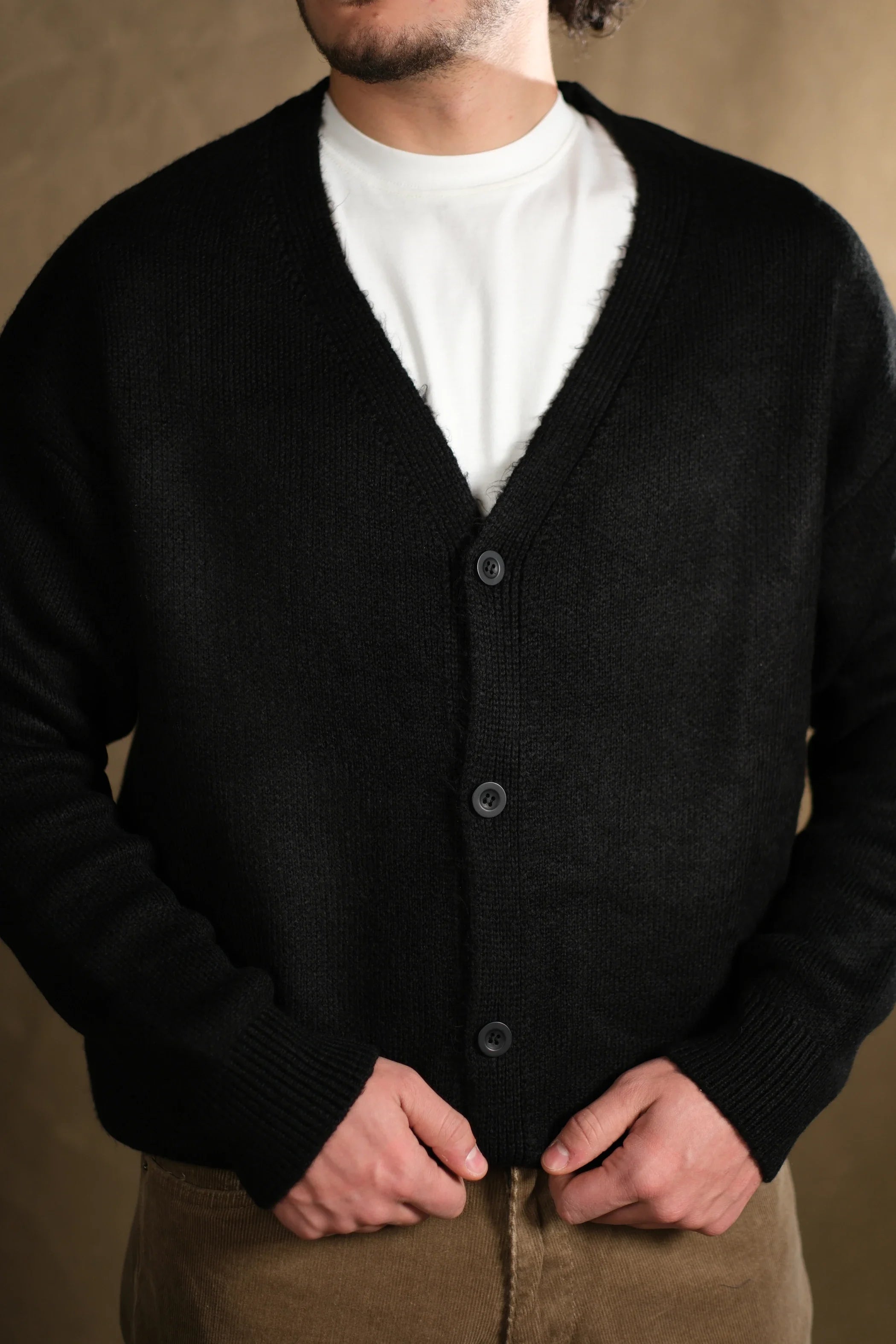 Wool-Textured V-Neck Knit Cardigan