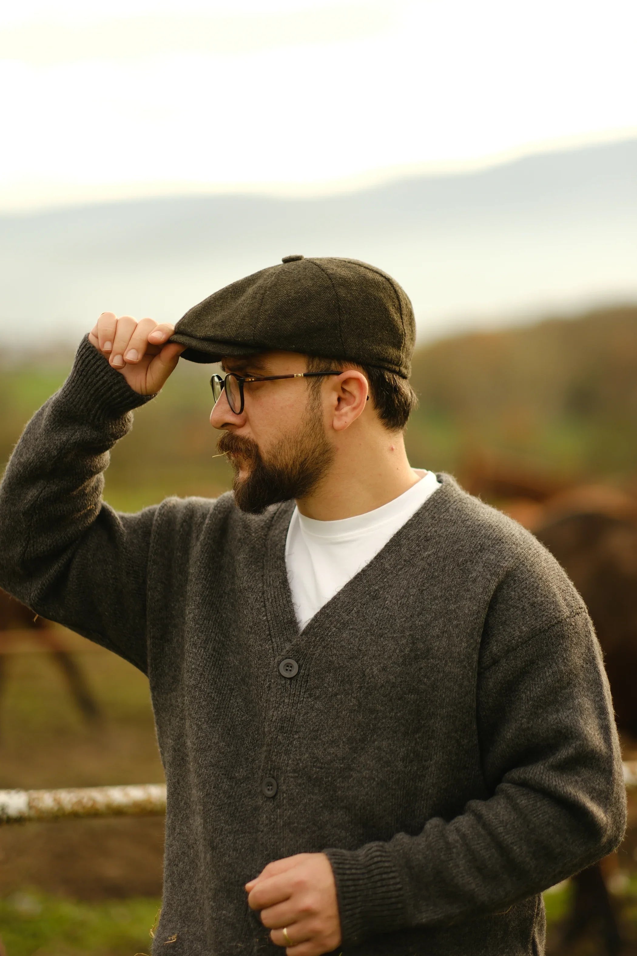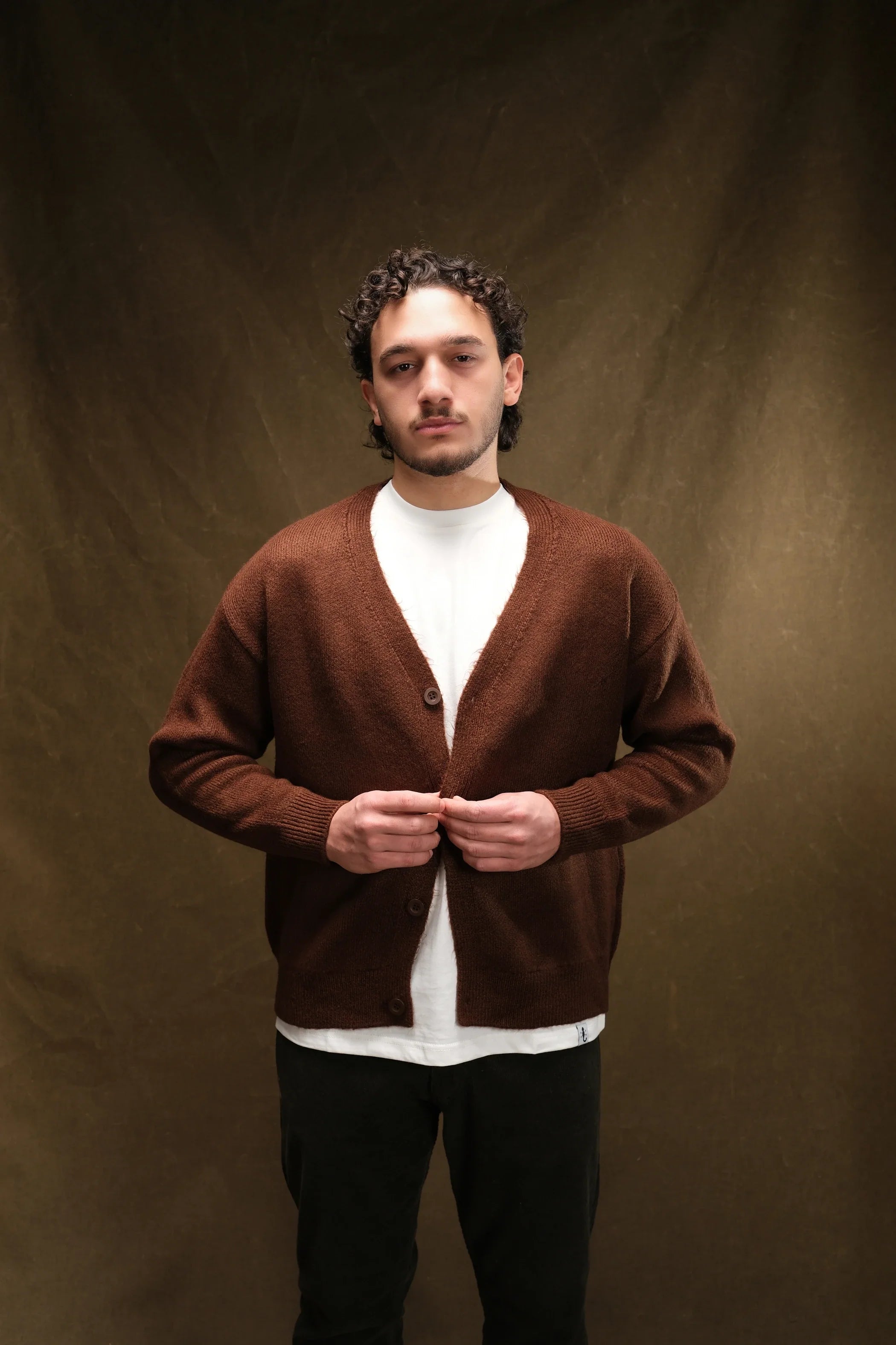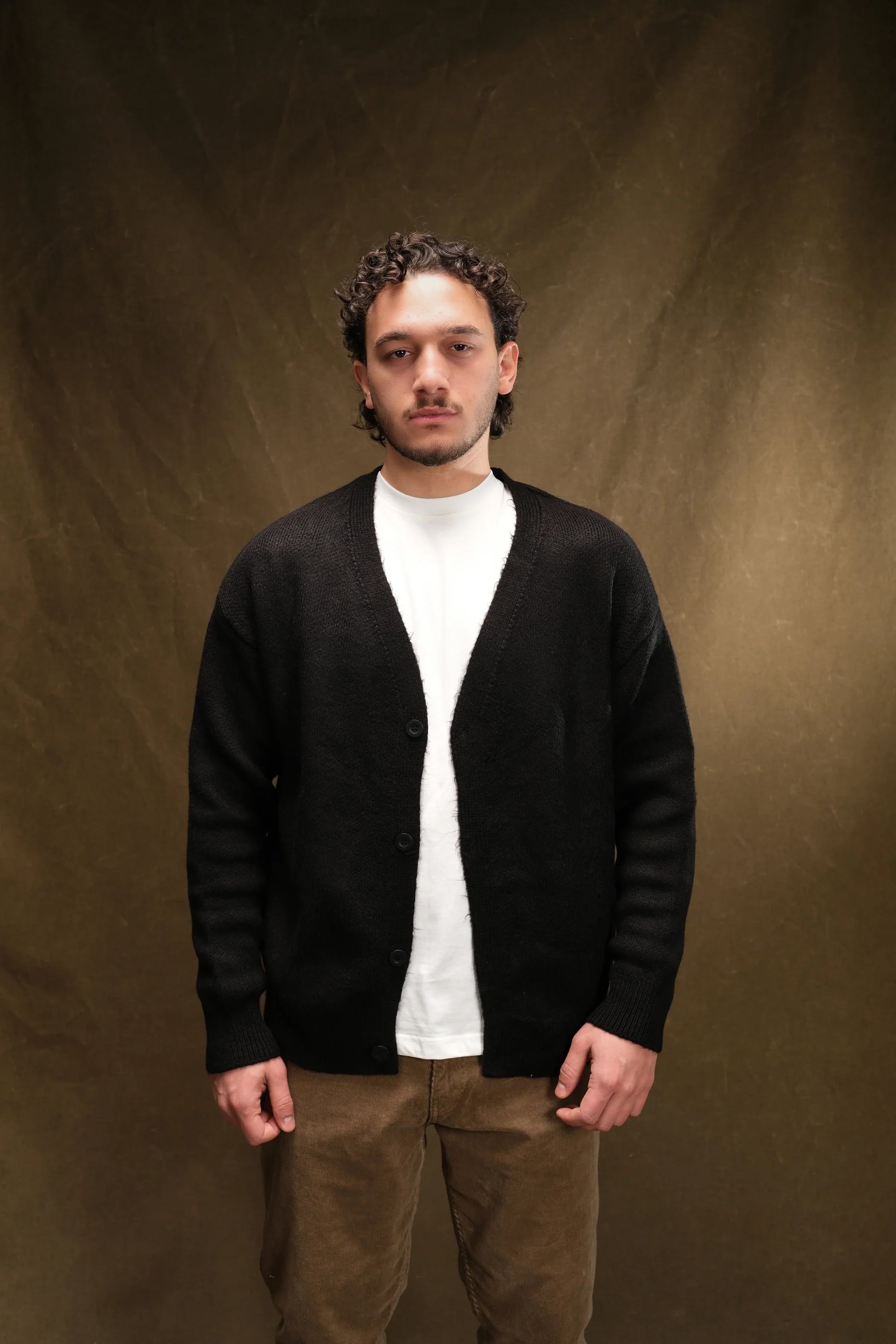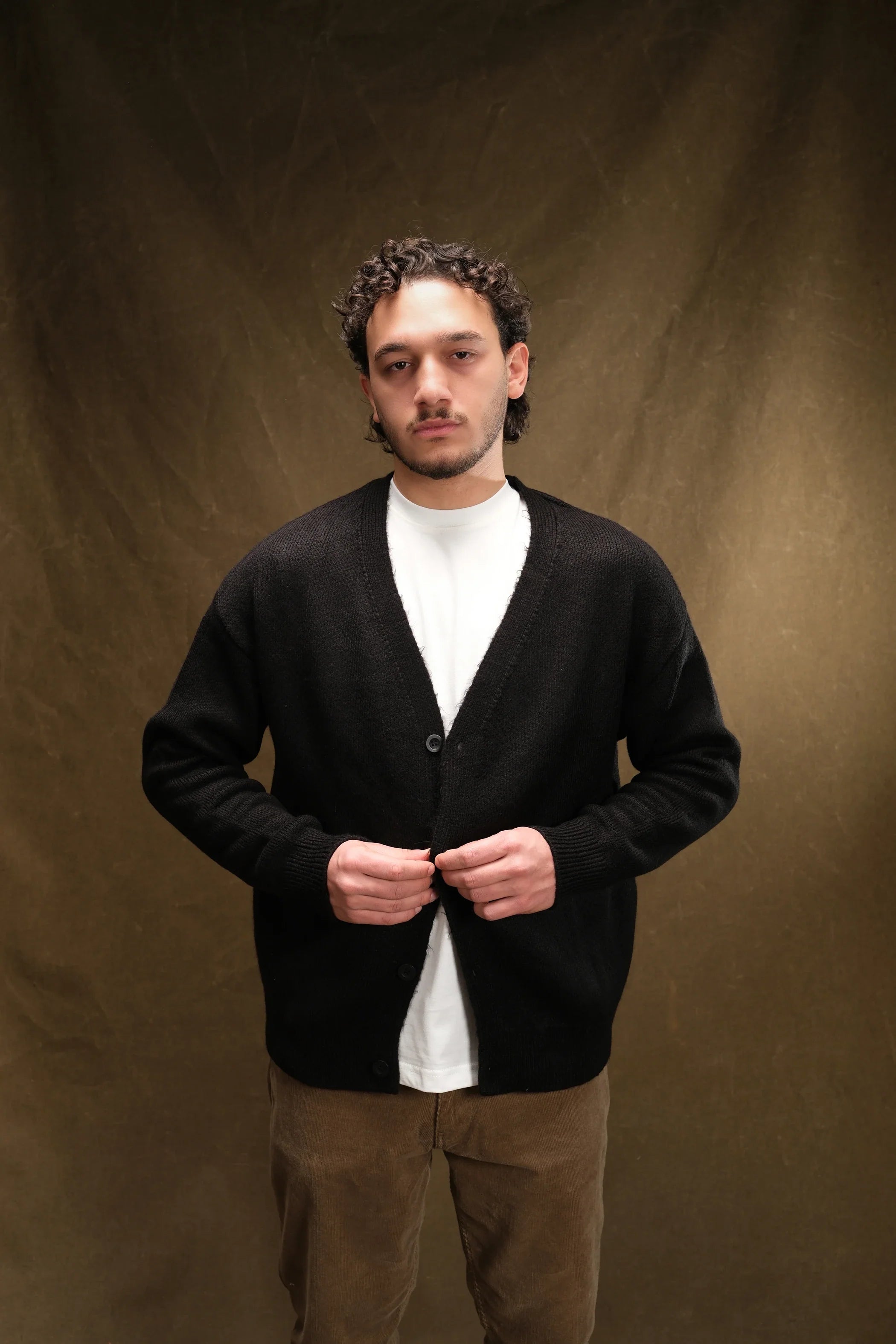 Wool-Textured V-Neck Knit Cardigan